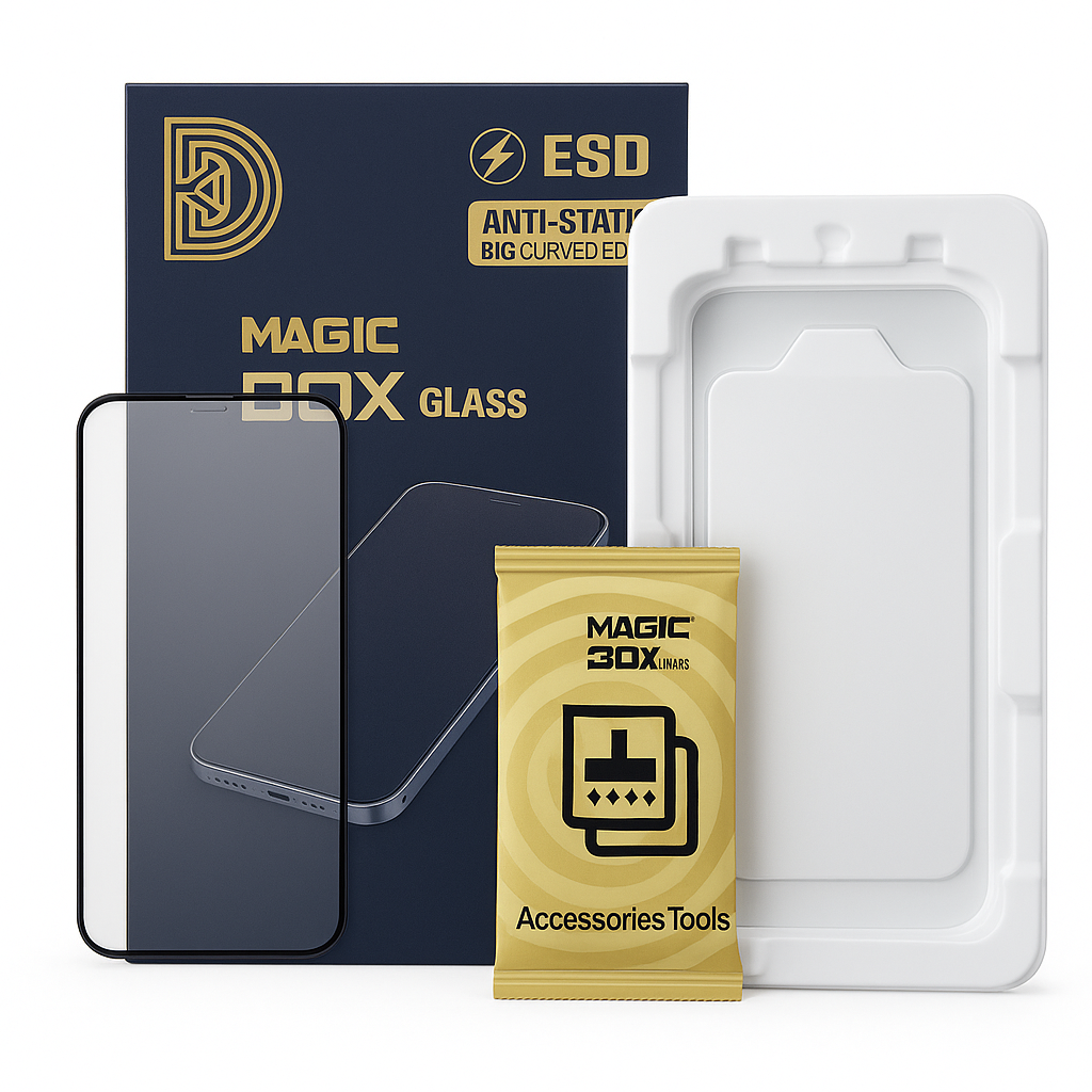 The Magic Box Tempered Glass is specially designed to provide premium screen protection for iPhone models. Made with high-quality materials, this glass ensures 9H hardness, superior clarity, and edge-to-edge protection while maintaining the original touch sensitivity of your device.